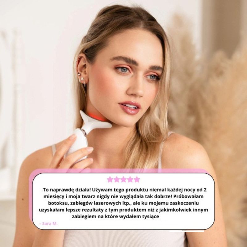 Tak. Regularne stosowanie poprawia napięcie skóry, ujędrnia owal twarzy, zmniejsza drobne zmarszczki i poprawia koloryt. Efekty są widoczne przy codziennym stosowaniu 5–15 minut.