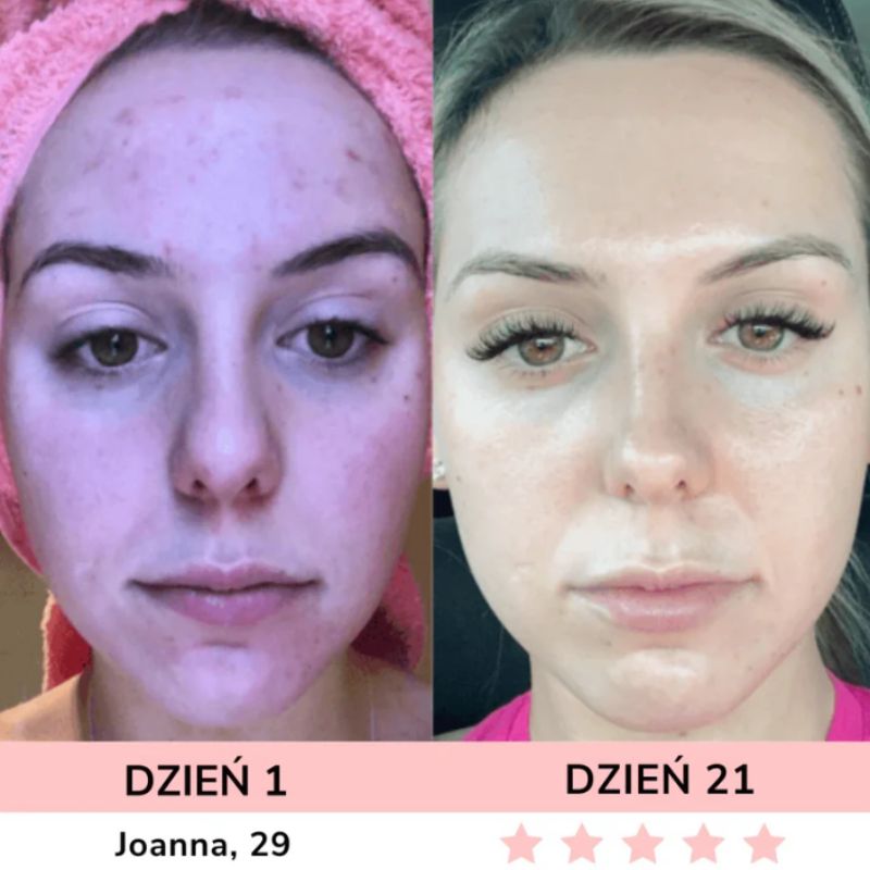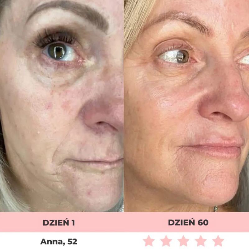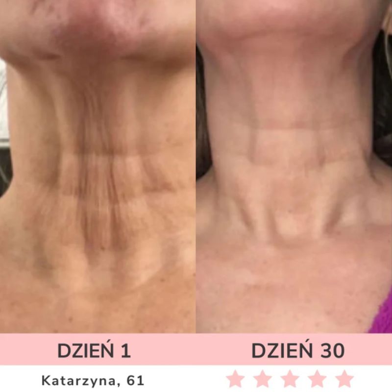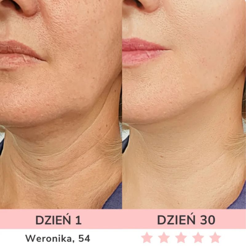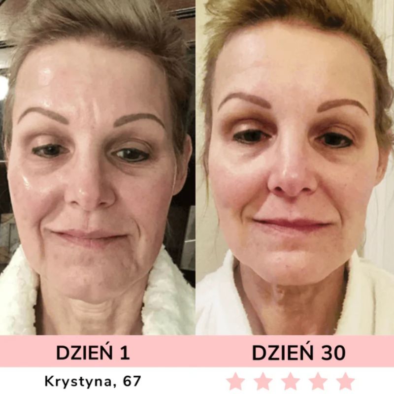 „Nie wierzyłam, że coś takiego może działać… a jednak. Po miesiącu zauważyłam, że linia żuchwy jest wyraźniejsza, a szyja wygląda młodziej. Największy szok? Zmarszczki na czole jakby spłycone. Używam codziennie 10 minut. Warto.”